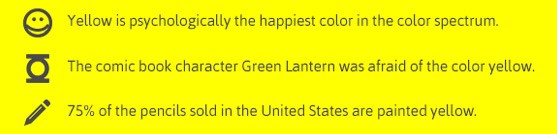 As research shows, it’s likely because of personal preference, experiences, upbringing, cultural differences, and context often muddy the effect individual colours have on us. So the idea that colours such as yellow or purple are able to evoke some sort of hyper-specific emotion is about as accurate as your standard palm reading.