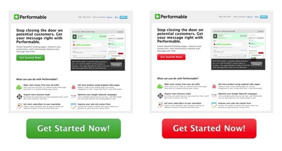 The button change to red boosted conversions by 21 percent. However, we can’t make hasty assumptions about “the power of red” in isolation. It’s obvious that the rest of the page is geared toward a green palette, which means a green call to action simply blends in with the surroundings. Red, meanwhile, provides a stark visual contrast and is a complementary colour to green.